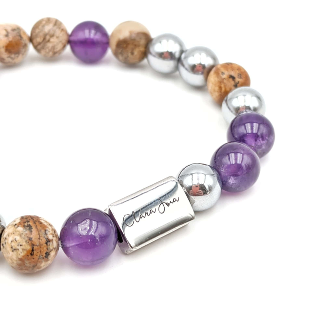 Bracelet Clara Joia Améthyste Bois d'Encens Acier Argenté