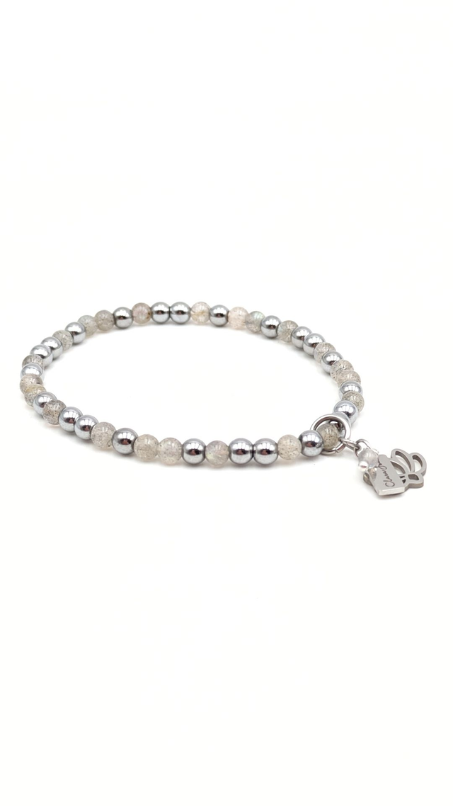 Ce bracelet en perles de 4 mm marie la finesse de la labradorite à l’éclat sobre de l’acier argenté. Discret et lumineux, il t’accompagne au quotidien pour renforcer ton intuition tout en favorisant la clarté d’esprit. Son pendentif Fleur de Lotus évoque la paix intérieure et la renaissance.