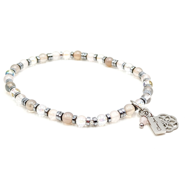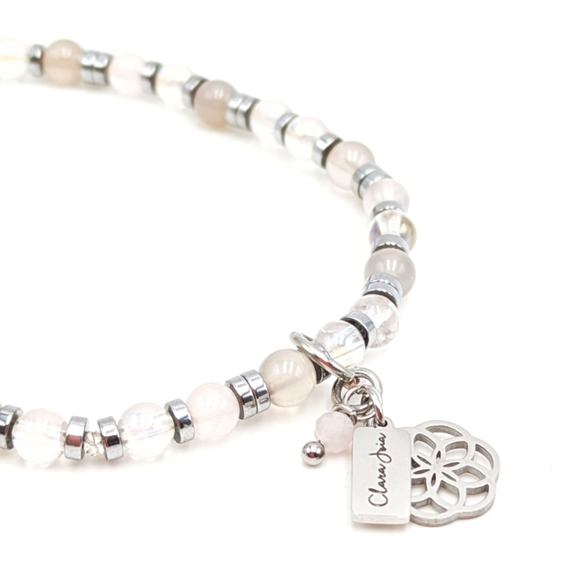 Bracelet Clara Joia Acier Argenté Agate Grise Quartz Rose Quartz Aura Angel