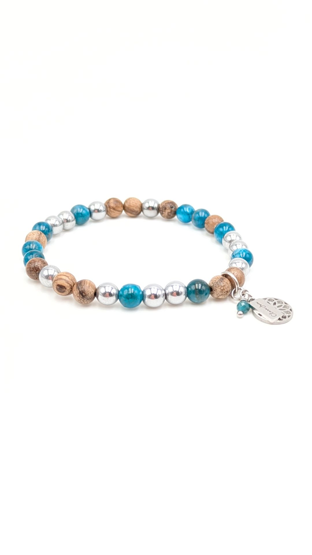 Bracelet Clara Joia Apatite Bois d'Encens Acier Argenté Rosace
