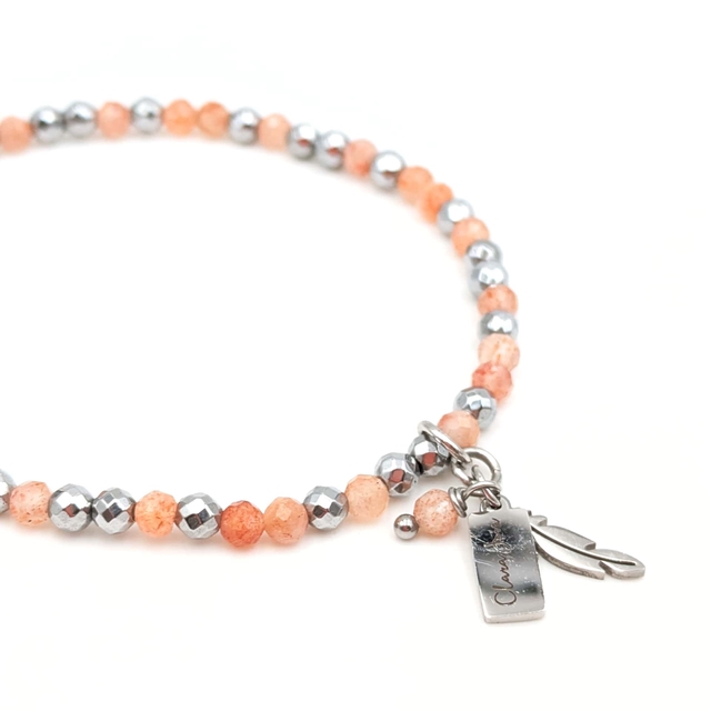 Bracelet Clara Joia Pierre de Soleil Acier Argenté Plume
